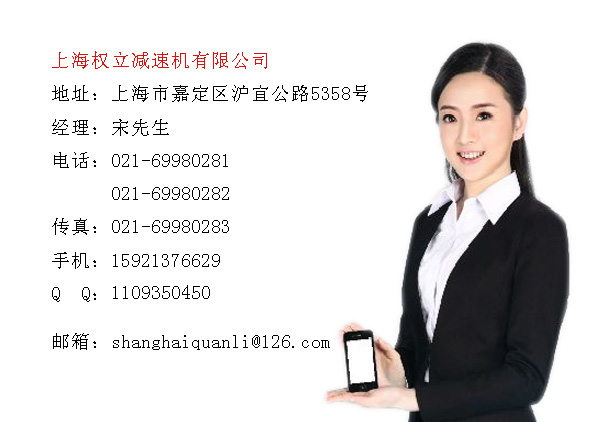 公司名稱:上海權(quán)立減速機(jī)有限公司 公司地址:上海市嘉定區(qū)滬宜公路5358號 電話:021-69980281 021-69980282 傳真:021-69980283 手機(jī):15921376629 網(wǎng)址:
